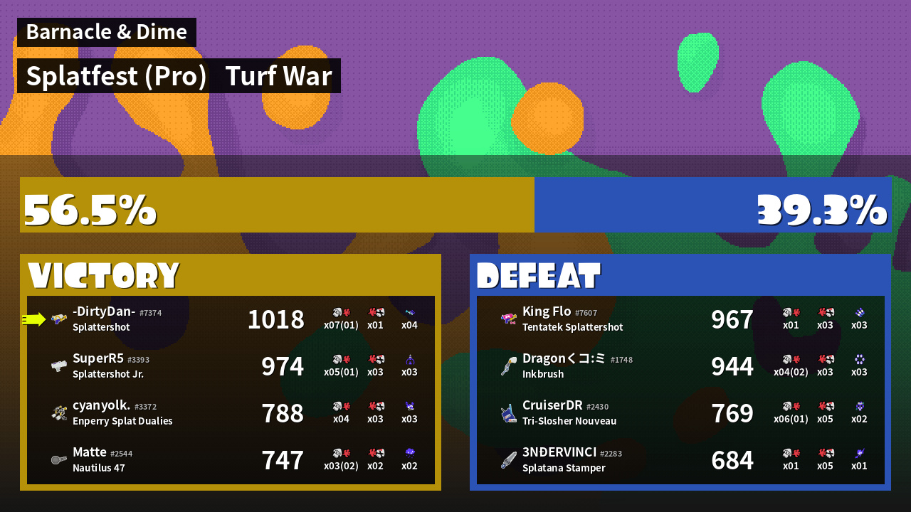 | Mode | Turf War - Splatfest (Pro) | ||