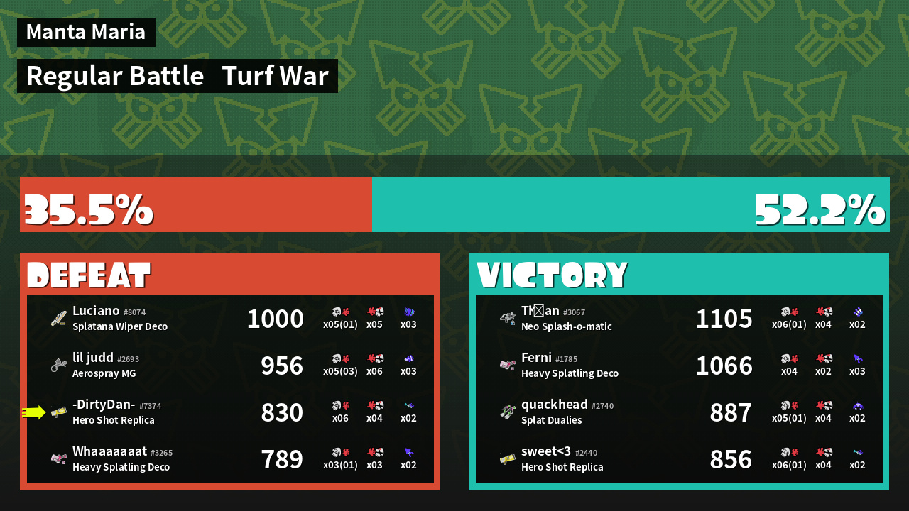 | Mode | Turf War - Regular Battle | ||