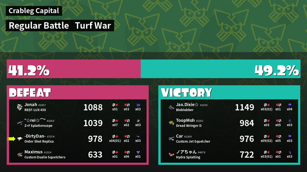 | Medals | #1 Super Jump Spot #1 Splat Assister #2 Overall Splatter | ||