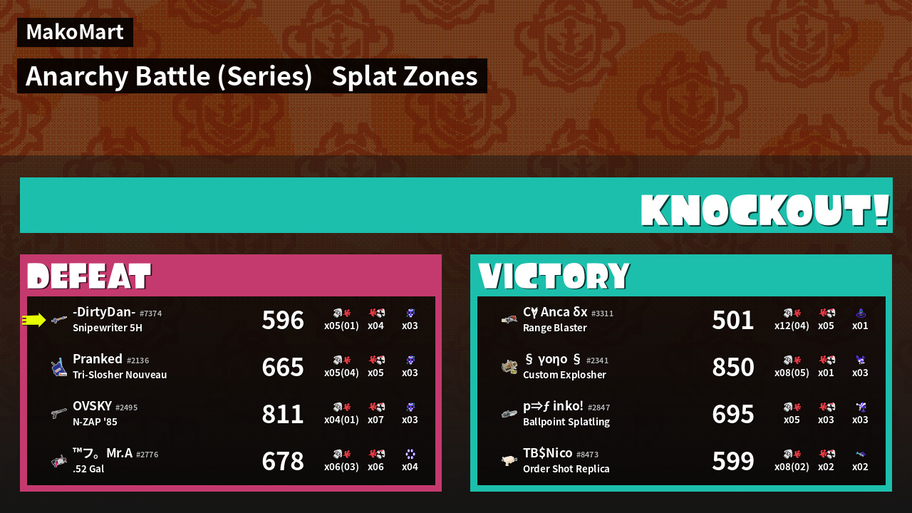 | Mode | Splat Zones - Anarchy Battle (Series) | ||
