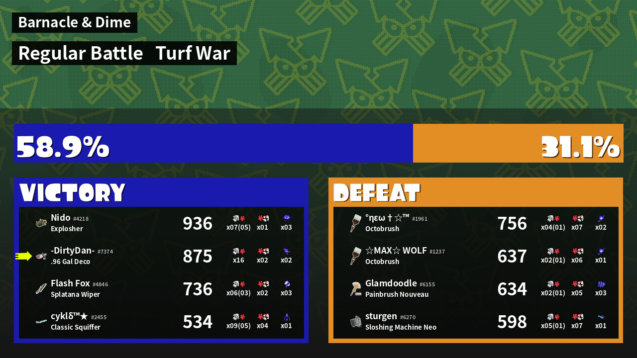 | Medals | #1 Overall Splatter #1 Popular Target #1 Enemy-Base Inker | ||