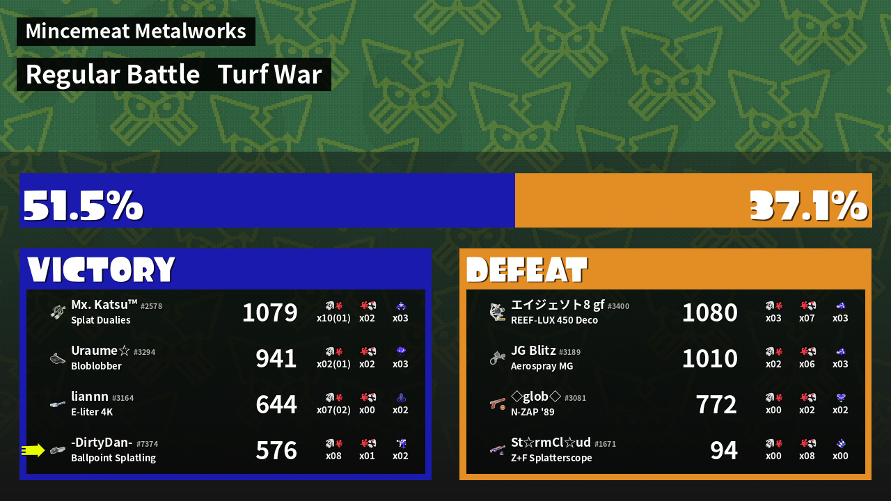 | Mode | Turf War - Regular Battle | ||
