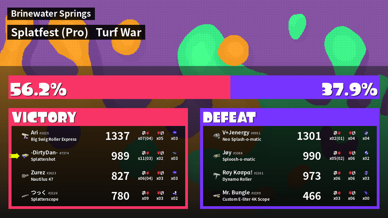 | Mode | Turf War - Splatfest (Pro) | ||
