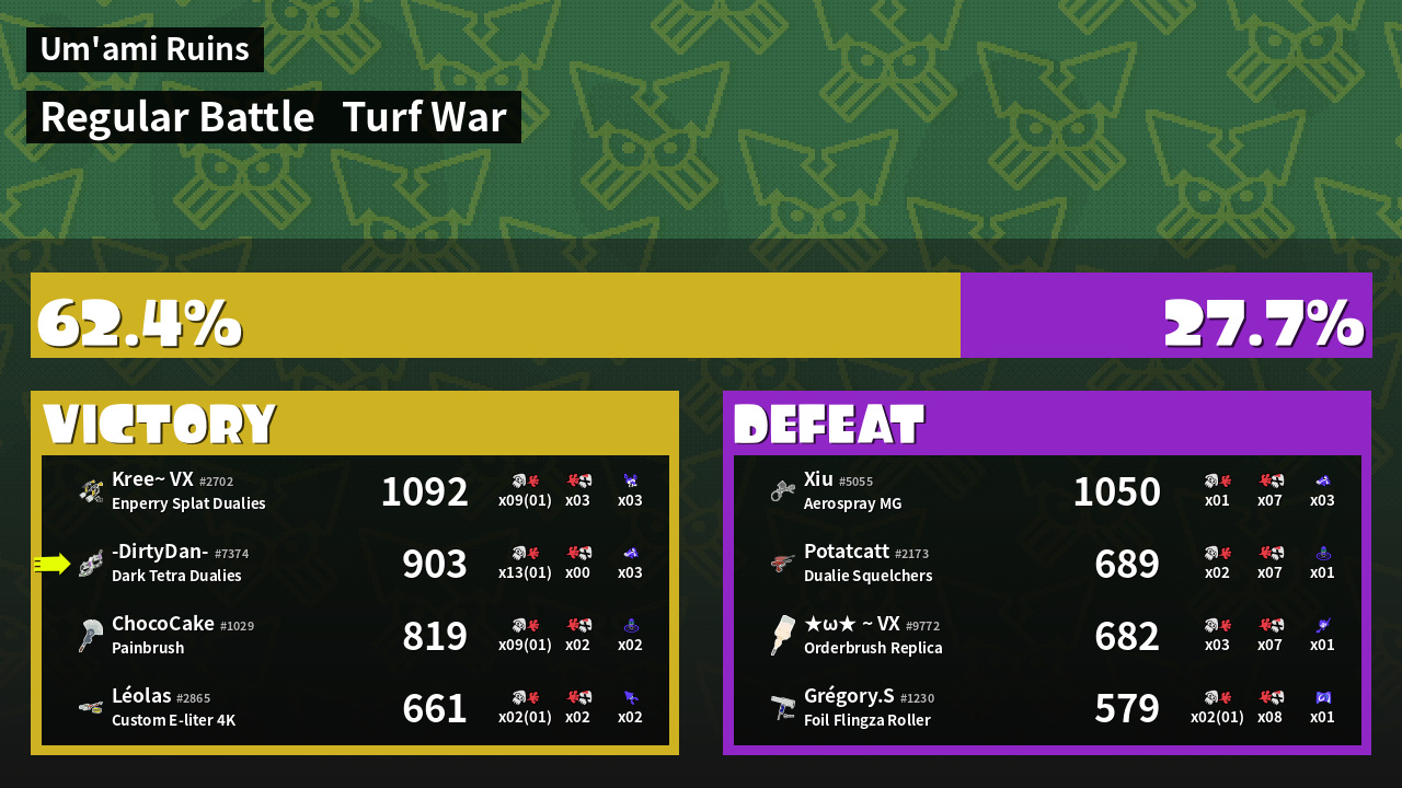 | Mode | Turf War - Regular Battle | ||