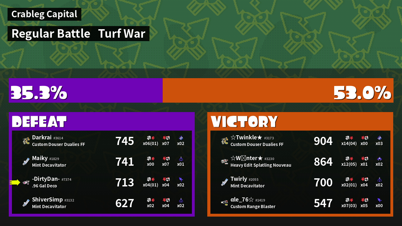 | Mode | Turf War - Regular Battle | ||