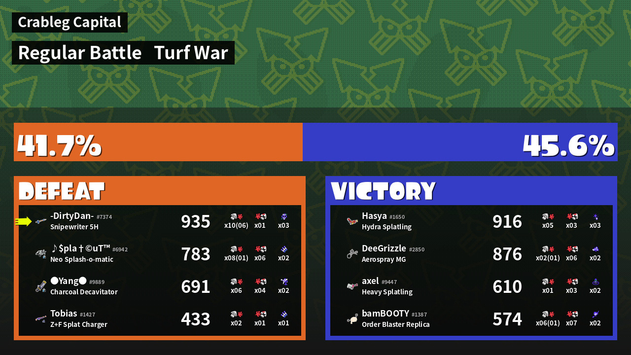 | Mode | Turf War - Regular Battle | ||
