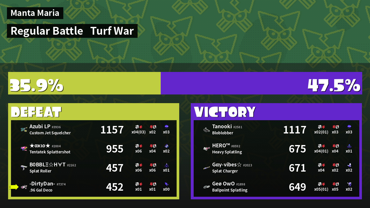 | Mode | Turf War - Regular Battle | ||