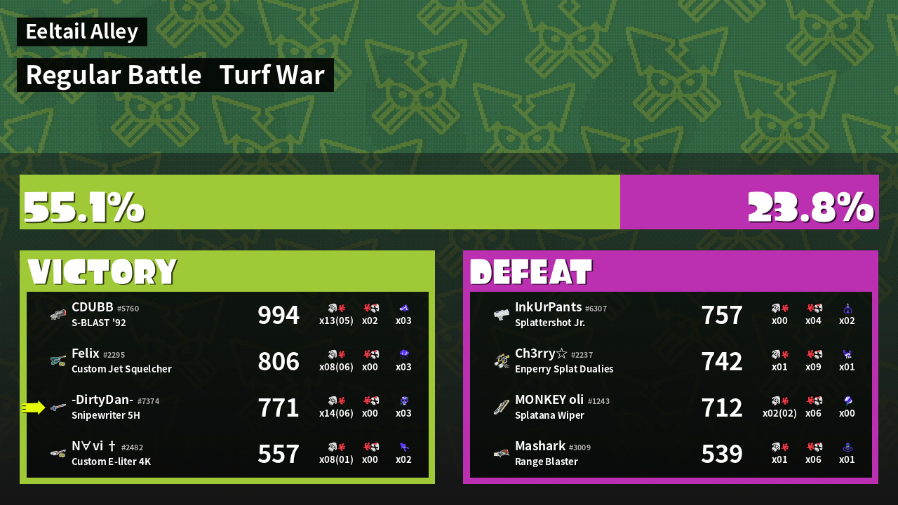 | Medals | #1 Overall Splatter #1 Popular Target #1 Enemy Splatter | ||