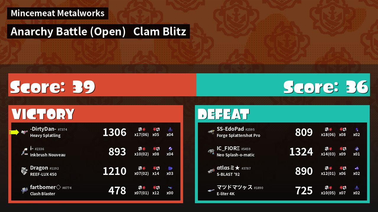 | Mode | Clam Blitz - Anarchy Battle (Open) | ||