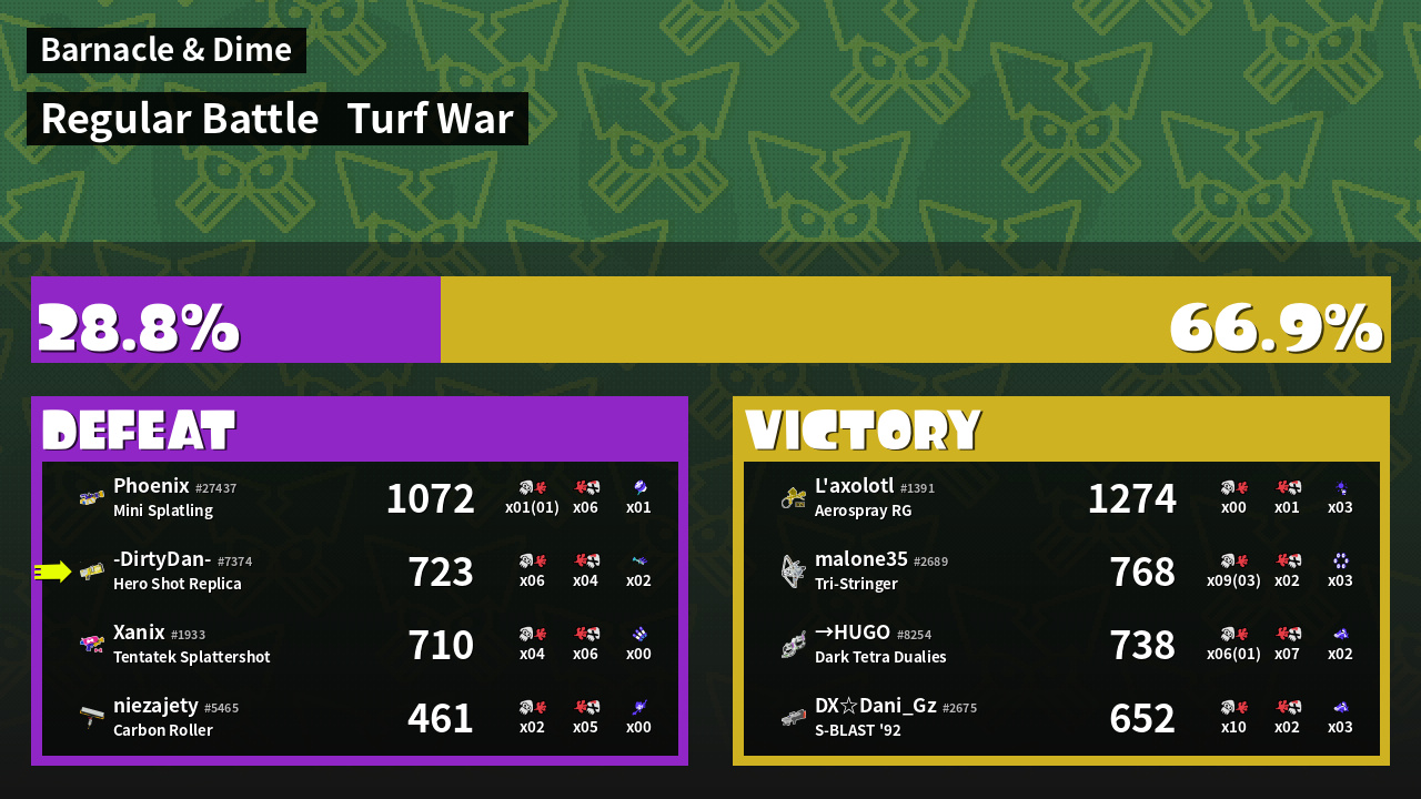 | Medals | #1 Overall Splatter #1 Popular Target #1 Enemy-Base Inker | ||