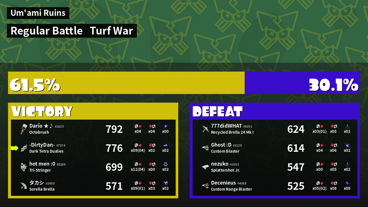 | Medals | #1 Splat Assister #1 Base Defender #1 Damage Taker | ||
