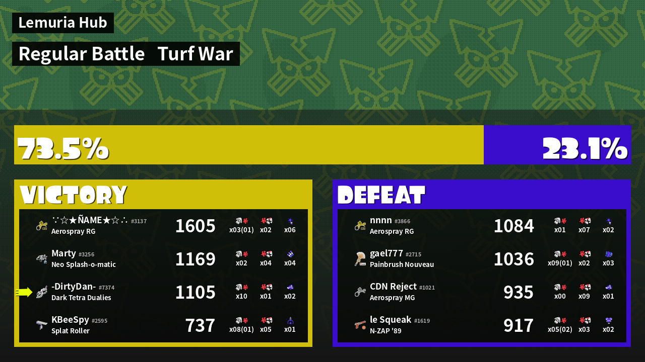 100% Splattershot User -DirtyDan- #7374 |