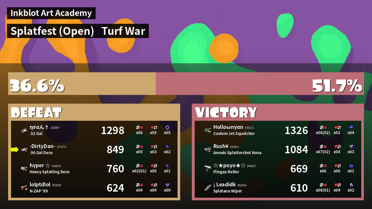 | Mode | Turf War - Splatfest (Open) | ||