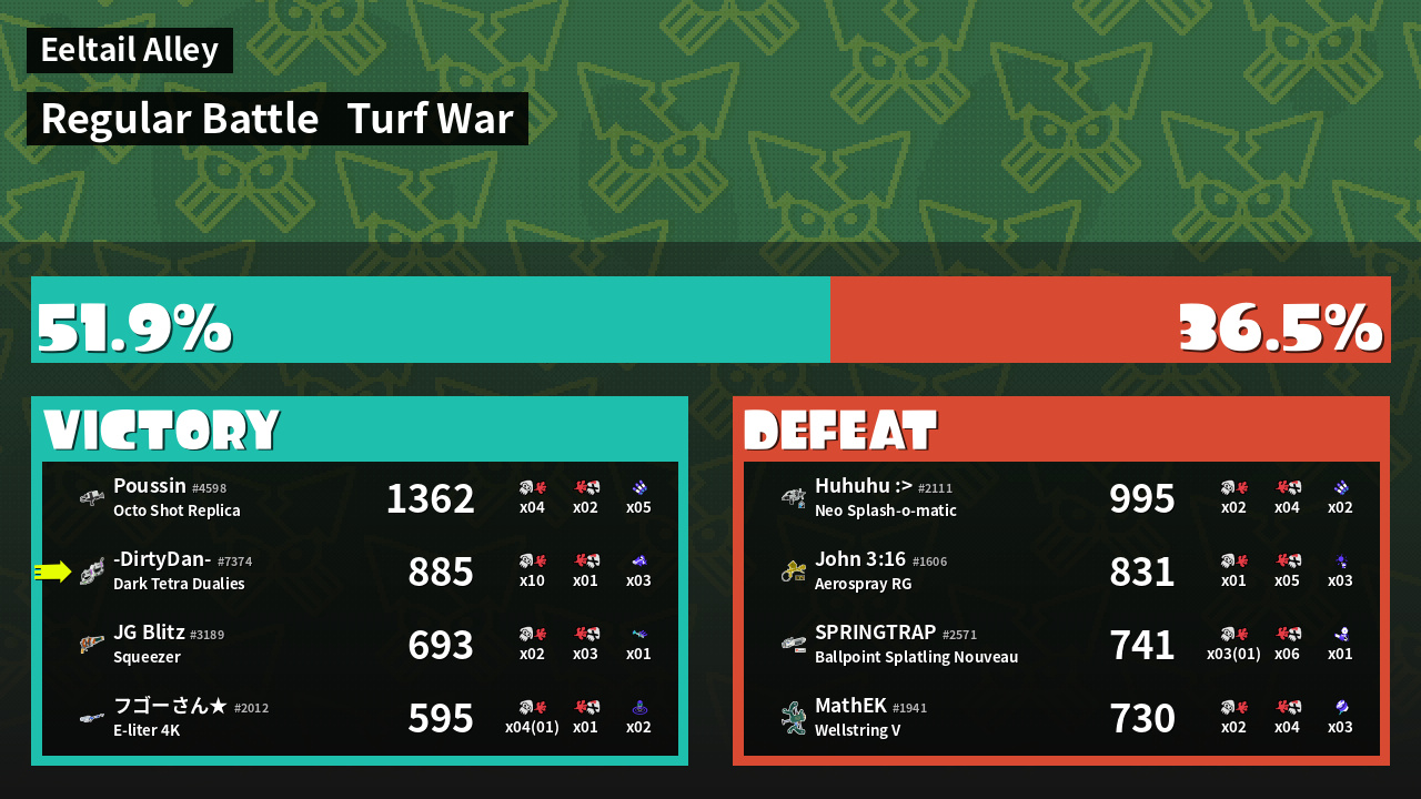 | Mode | Turf War - Regular Battle | ||