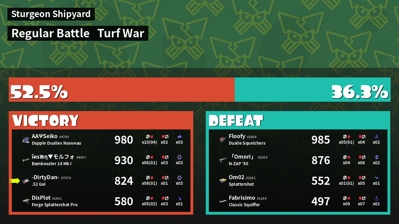 | Mode | Turf War - Regular Battle | ||