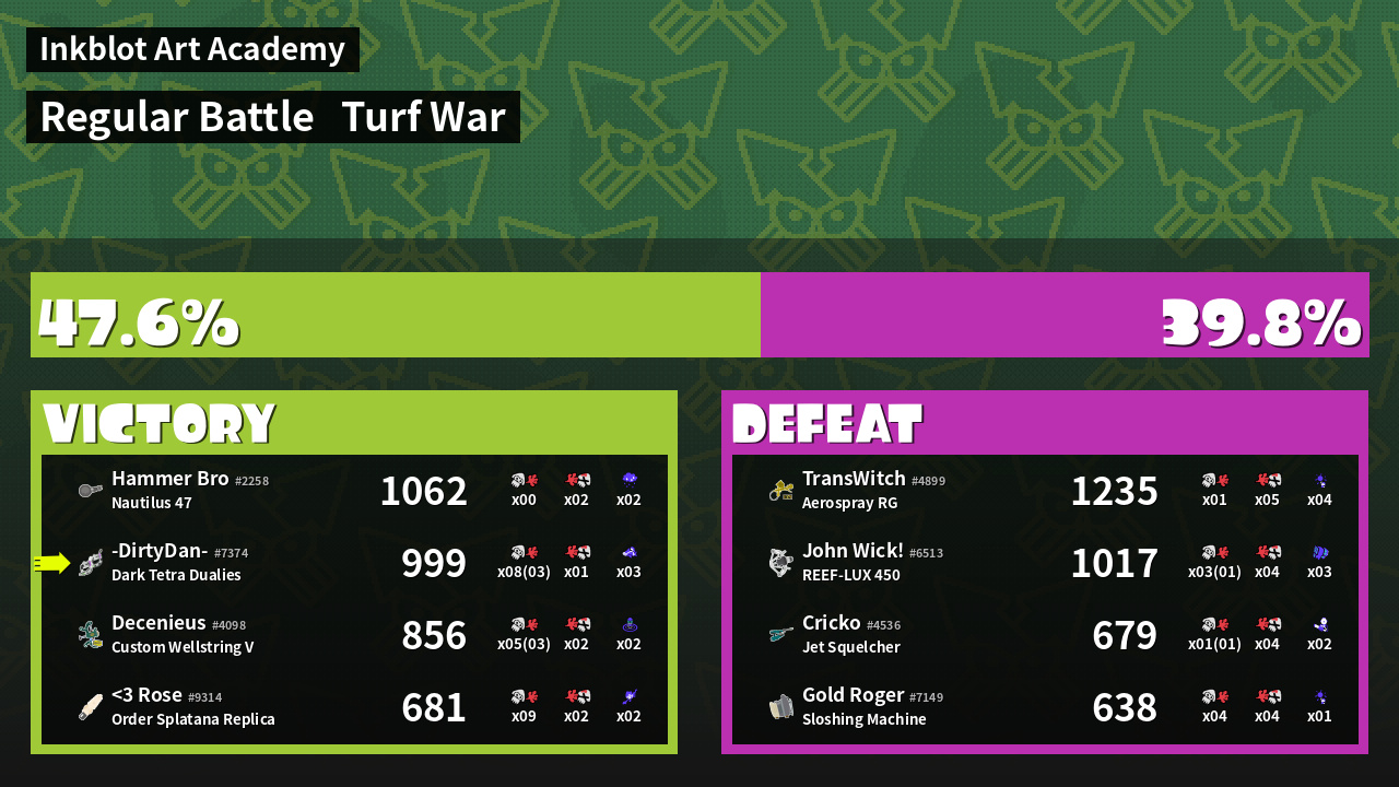 100% Splattershot User -DirtyDan- #7374 |
