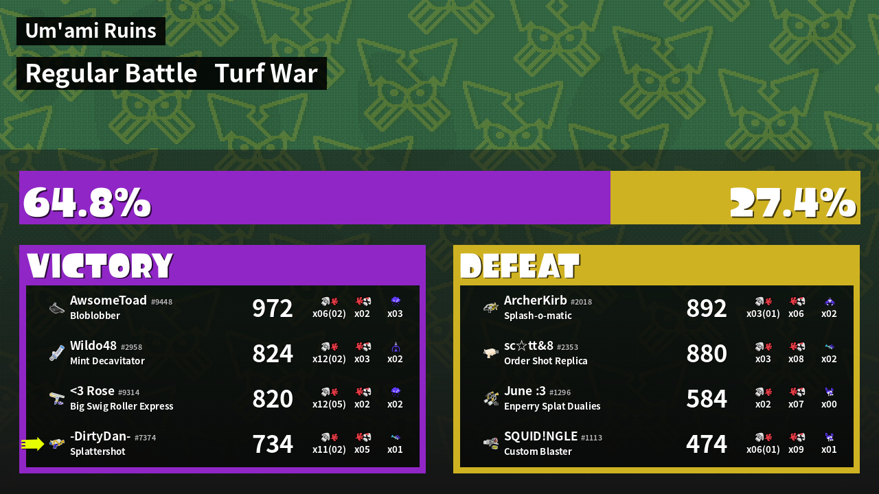 | Weapon | Splattershot ( Suction Bomb / Trizooka) | ||