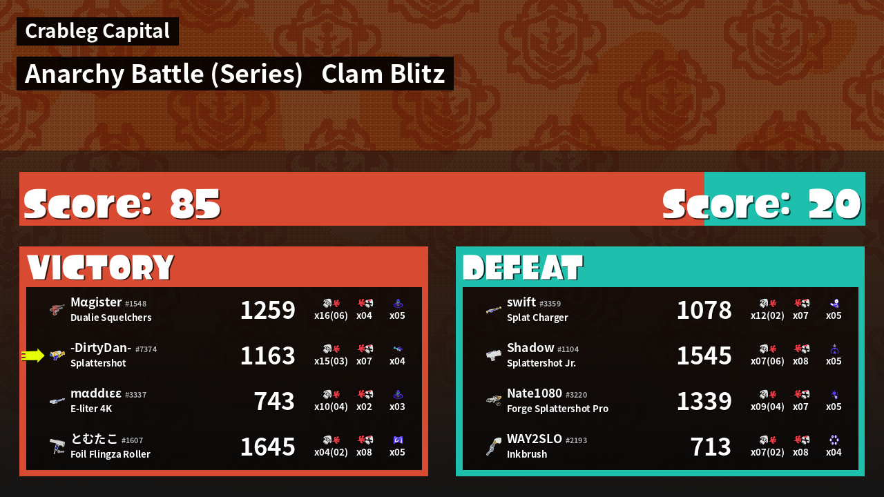 | Mode | Clam Blitz - Anarchy Battle (Series) | ||