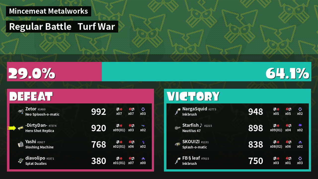 | Mode | Turf War - Regular Battle | ||