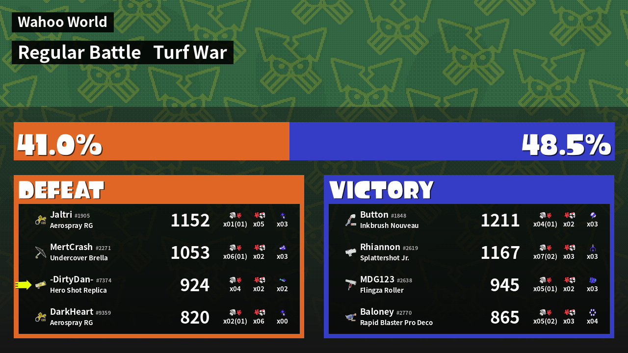 | Mode | Turf War - Regular Battle | ||