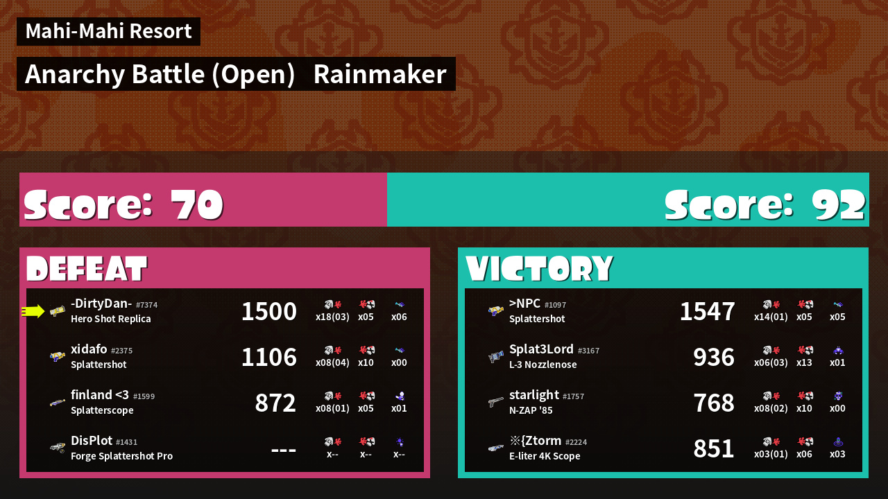| Mode | Rainmaker - Anarchy Battle (Open) | ||