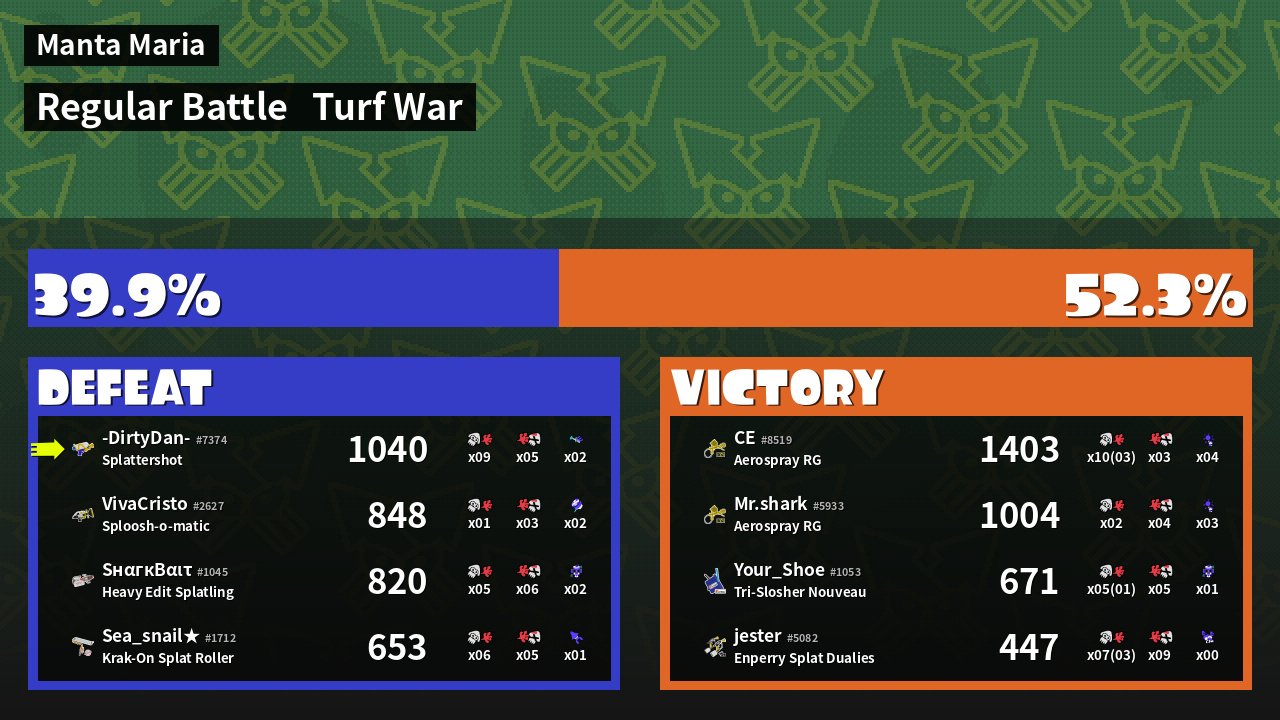 | Mode | Turf War - Regular Battle | ||