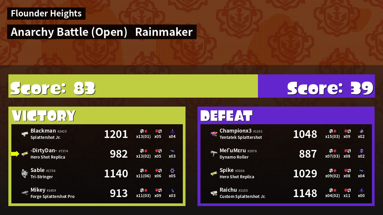 | Mode | Rainmaker - Anarchy Battle (Open) | ||