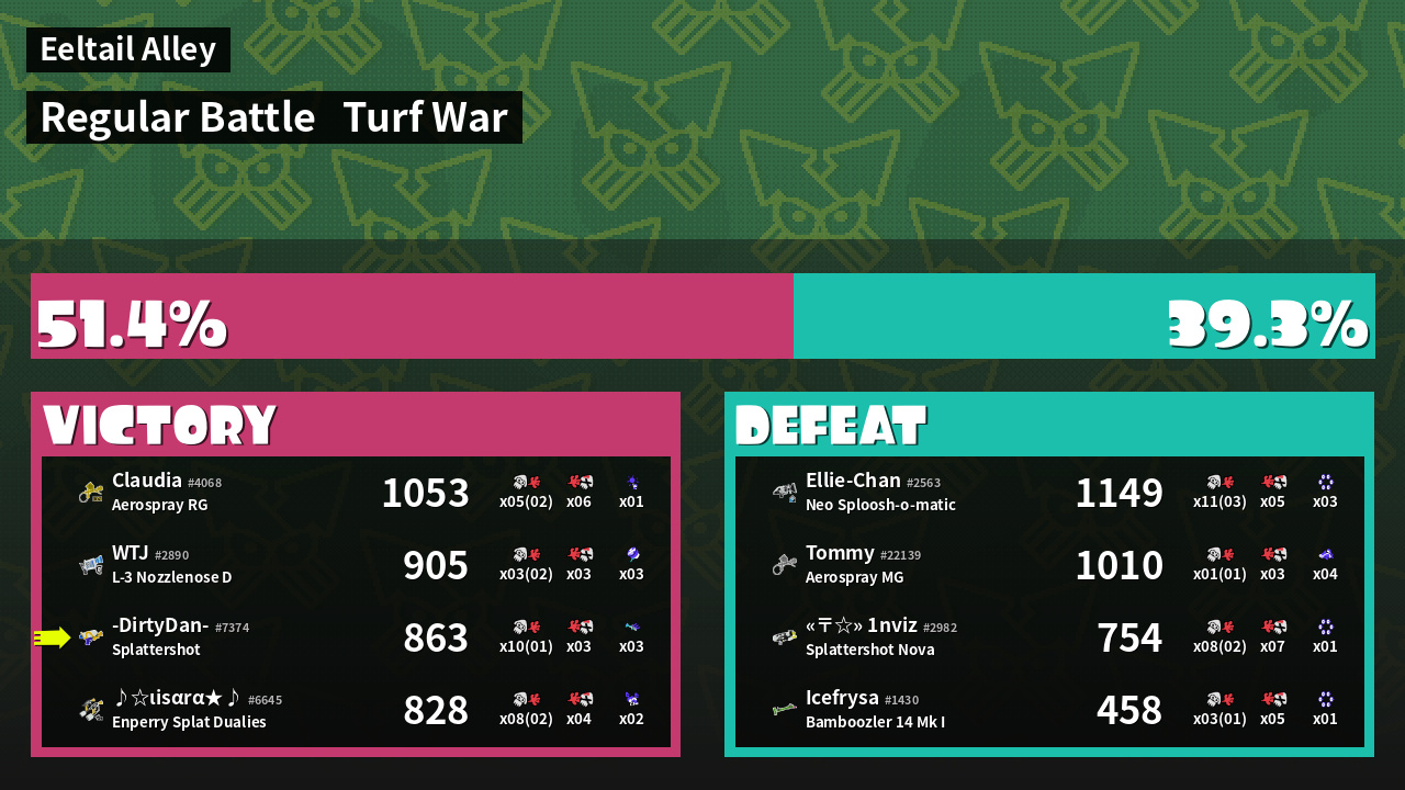 | Mode | Turf War - Regular Battle | ||