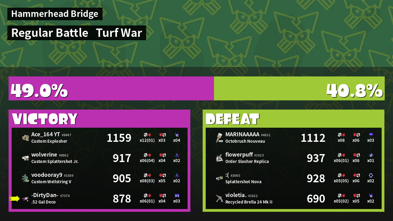 | Weapon | .52 Gal Deco ( Curling Bomb / Splattercolor Screen) | ||