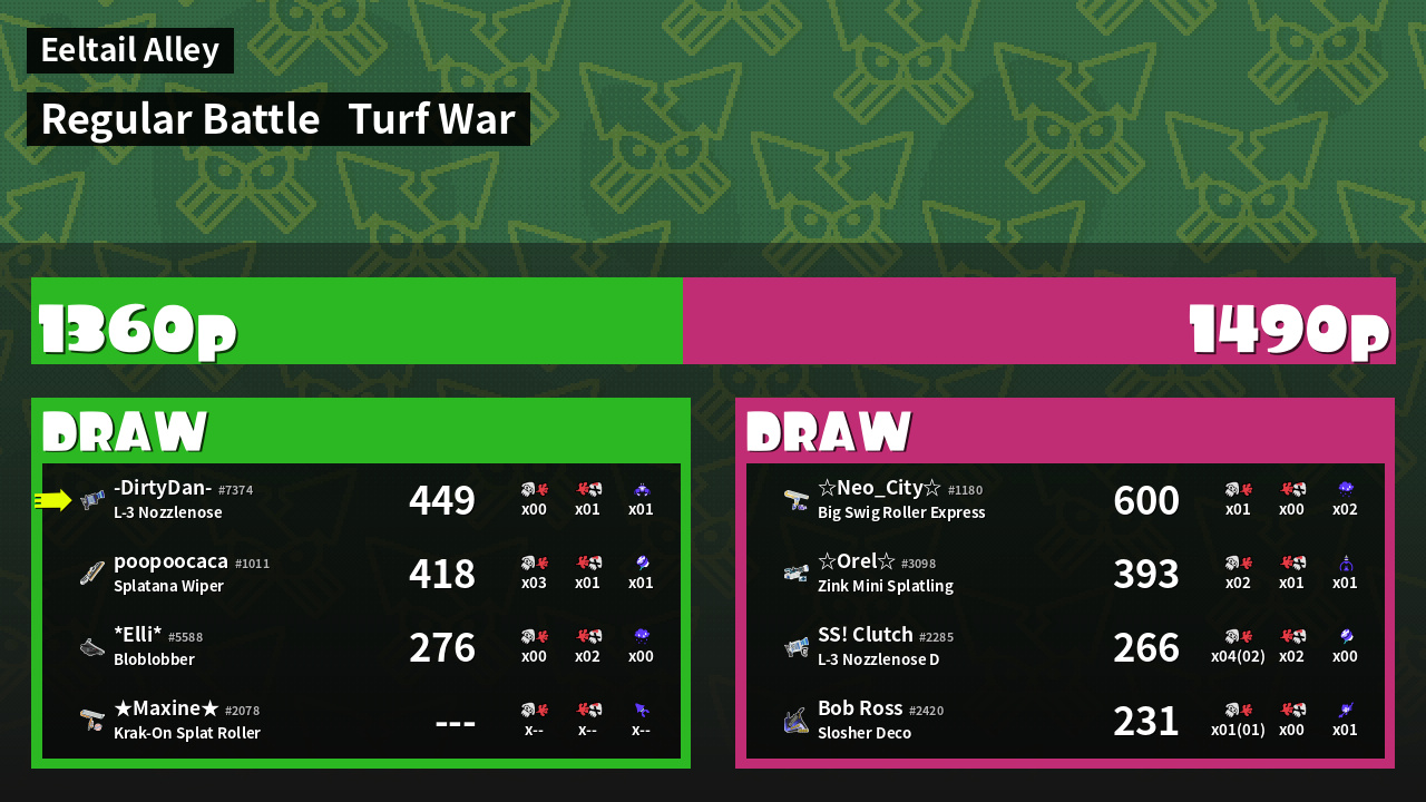 | Mode | Turf War - Regular Battle | ||