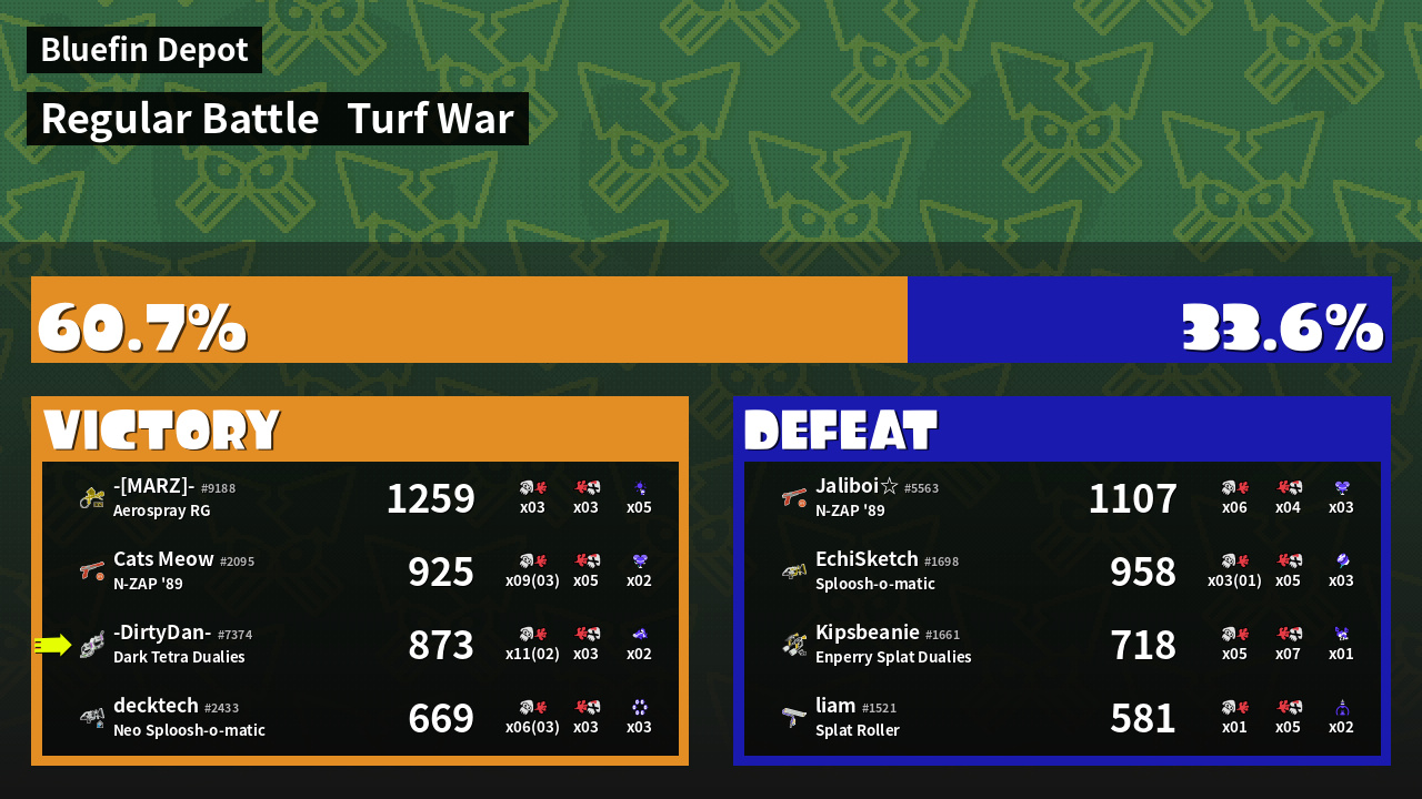 | Medals | #1 Overall Splatter #1 Popular Target #1 Enemy-Base Inker | ||