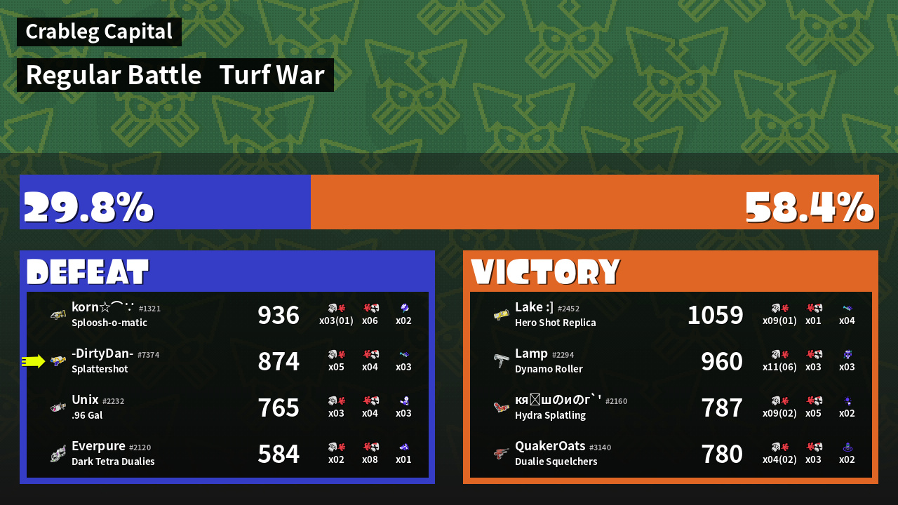 | Medals | #1 Overall Splatter #1 Popular Target #1 Enemy-Base Inker | ||