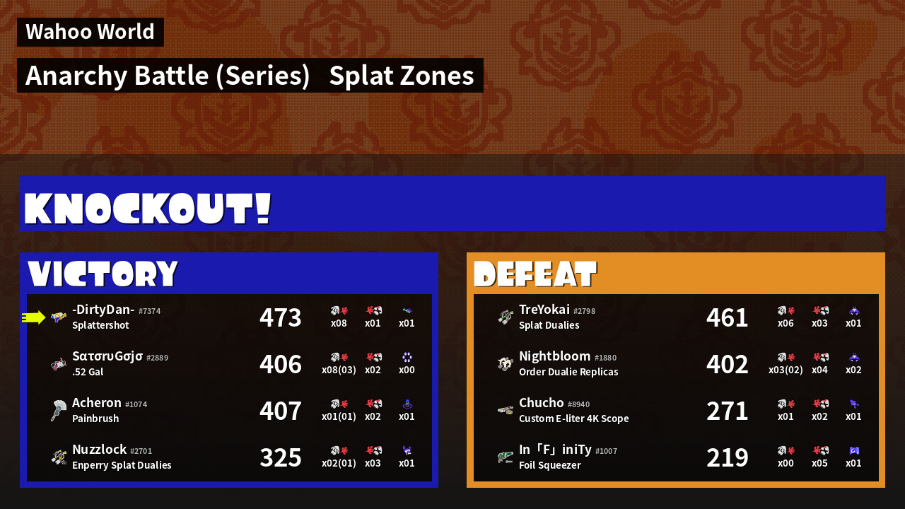 | Medals | #1 Overall Splatter #1 Splat Zone Inker #1 Splat Zone Guard | ||