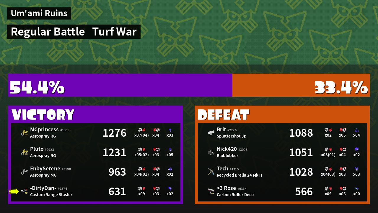 | Medals | #1 Overall Splatter #1 Enemy Splatter #1 Base Defender | ||