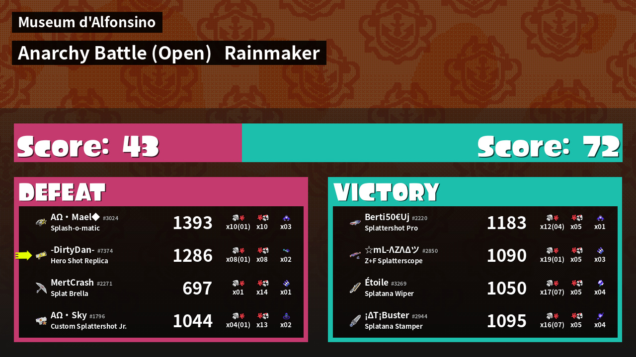 | Mode | Rainmaker - Anarchy Battle (Open) | ||