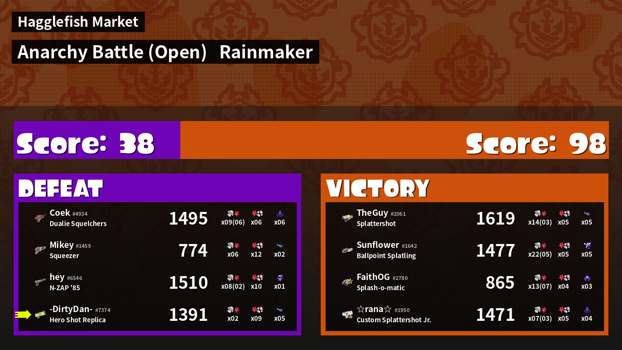 | Mode | Rainmaker - Anarchy Battle (Open) | ||