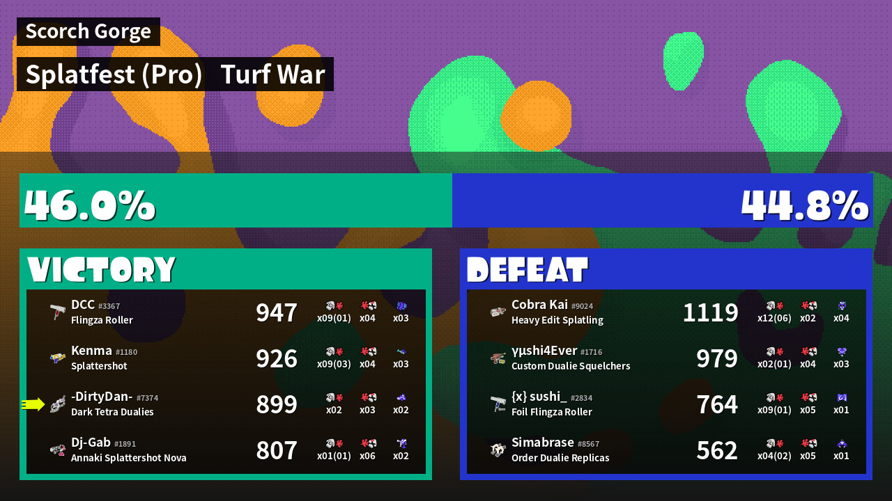 | Mode | Turf War - Splatfest (Pro) | ||