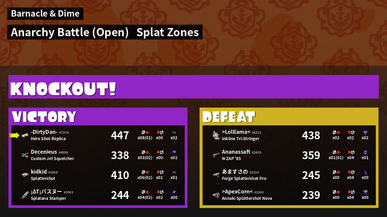 | Mode | Splat Zones - Anarchy Battle (Open) | ||