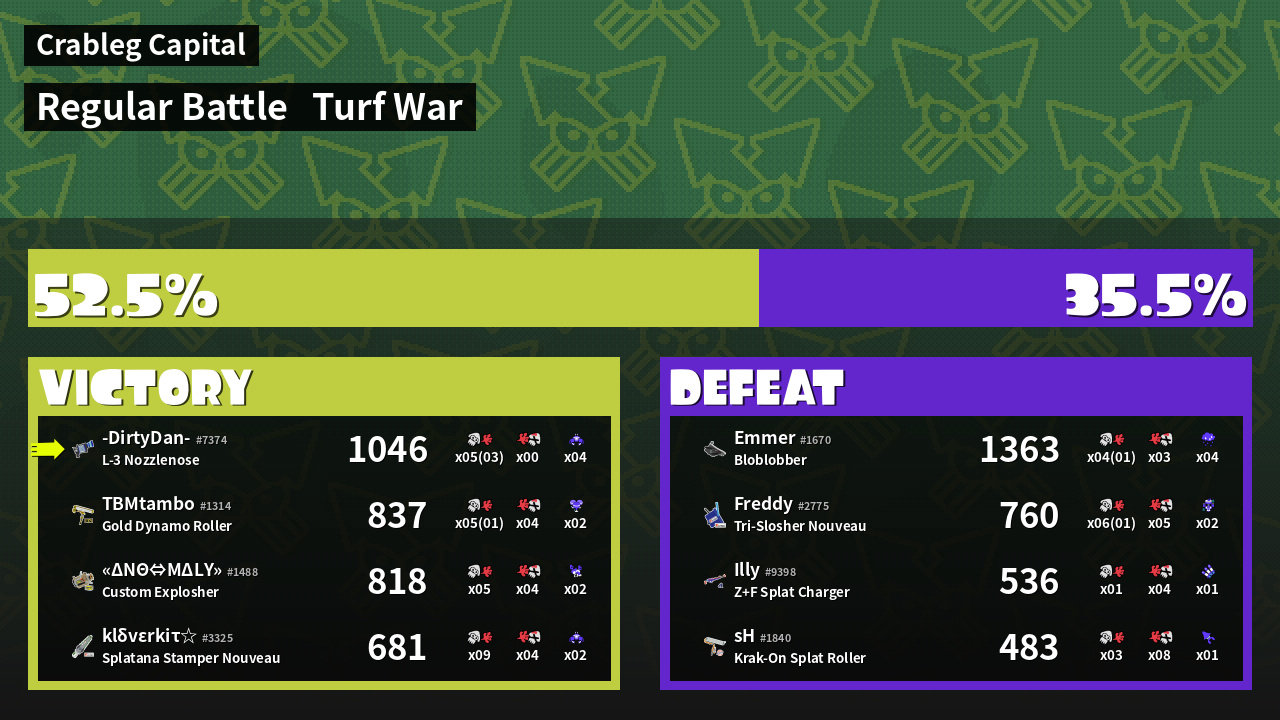 | Weapon | L-3 Nozzlenose ( Curling Bomb / Crab Tank) | ||