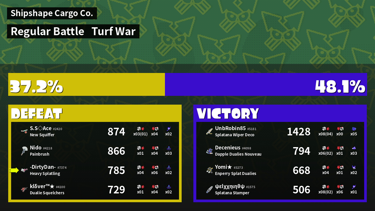 | Medals | #1 Overall Splatter #1 Enemy Splatter #1 Base Defender | ||