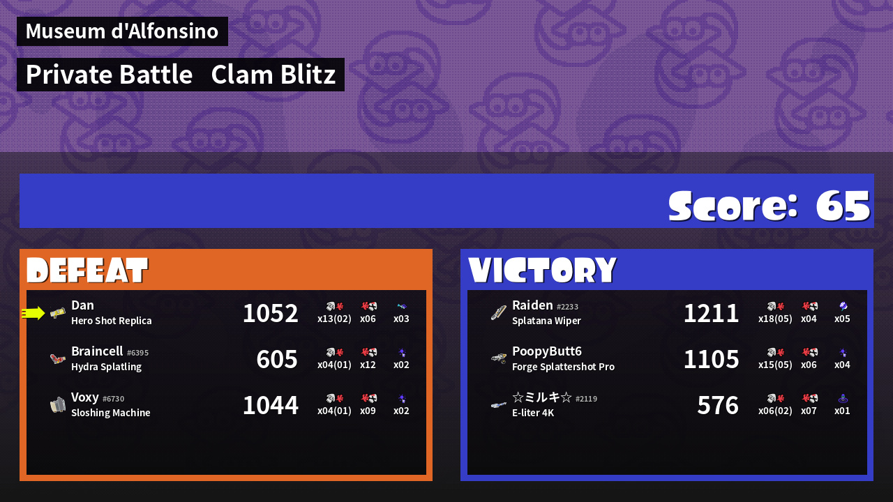 | Mode | Clam Blitz - Private Battle | ||