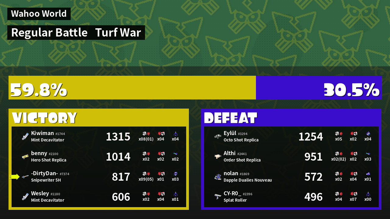 | Medals | #1 Overall Splatter #1 Super Jump Spot #1 Splat Assister | ||