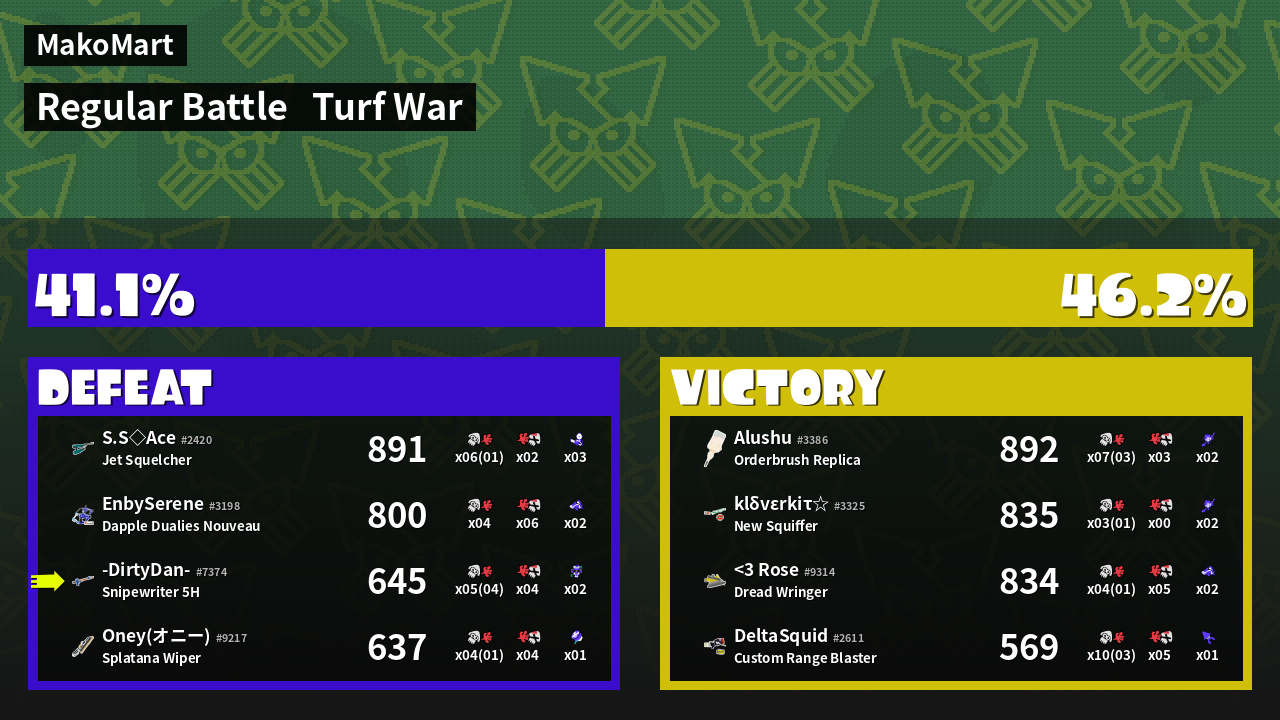 | Medals | #1 Splat Assister #1 Base Defender #1 Tacticooler User | ||