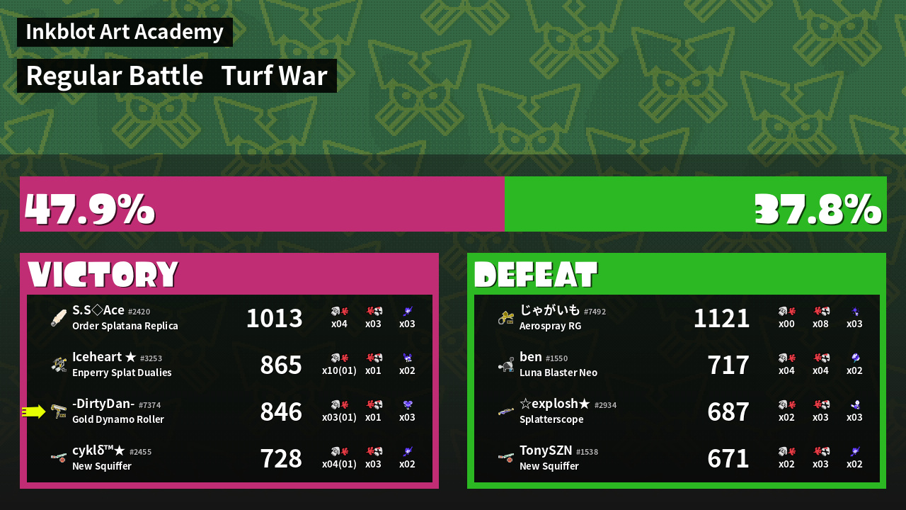 | Weapon | Gold Dynamo Roller ( Splat Bomb / Super Chump) | ||