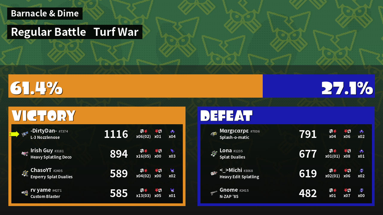 | Mode | Turf War - Regular Battle | ||