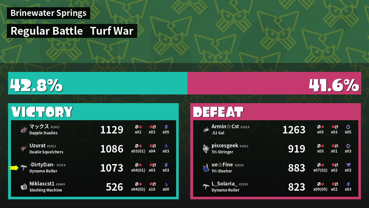 | Weapon | Dynamo Roller ( Sprinkler / Tacticooler) | ||