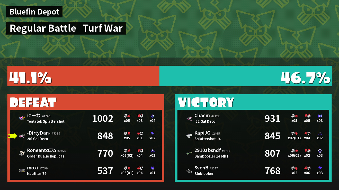 | Mode | Turf War - Regular Battle | ||