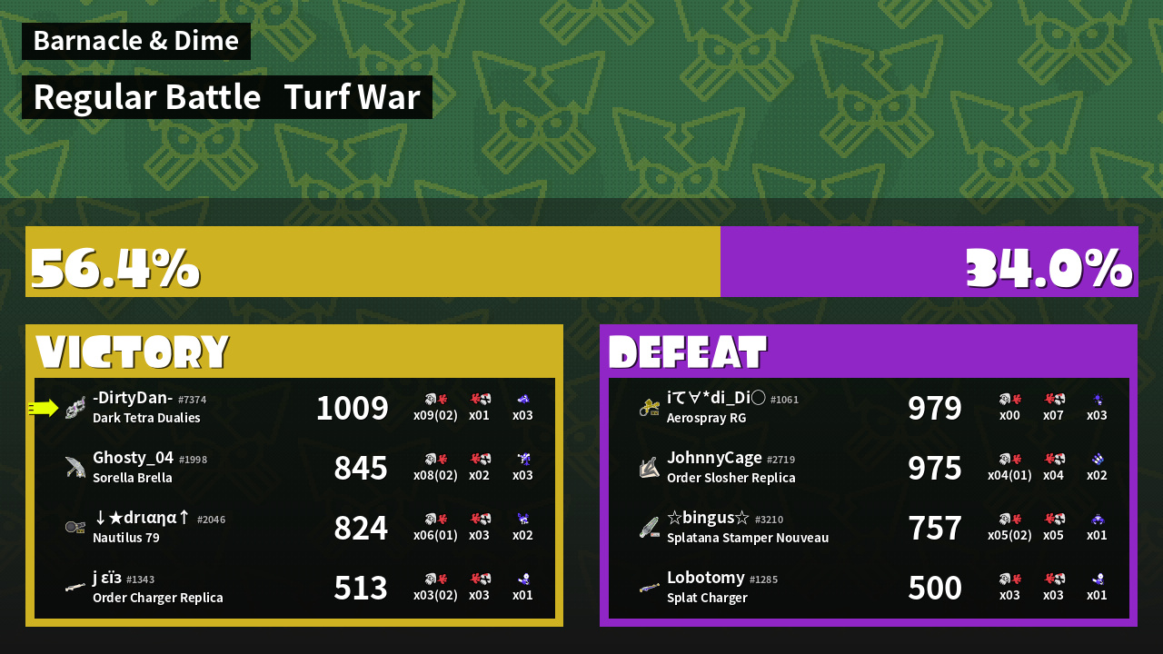 | Mode | Turf War - Regular Battle | ||