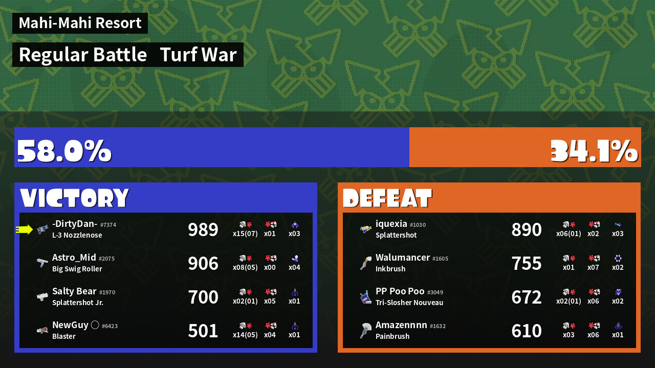 | Mode | Turf War - Regular Battle | ||