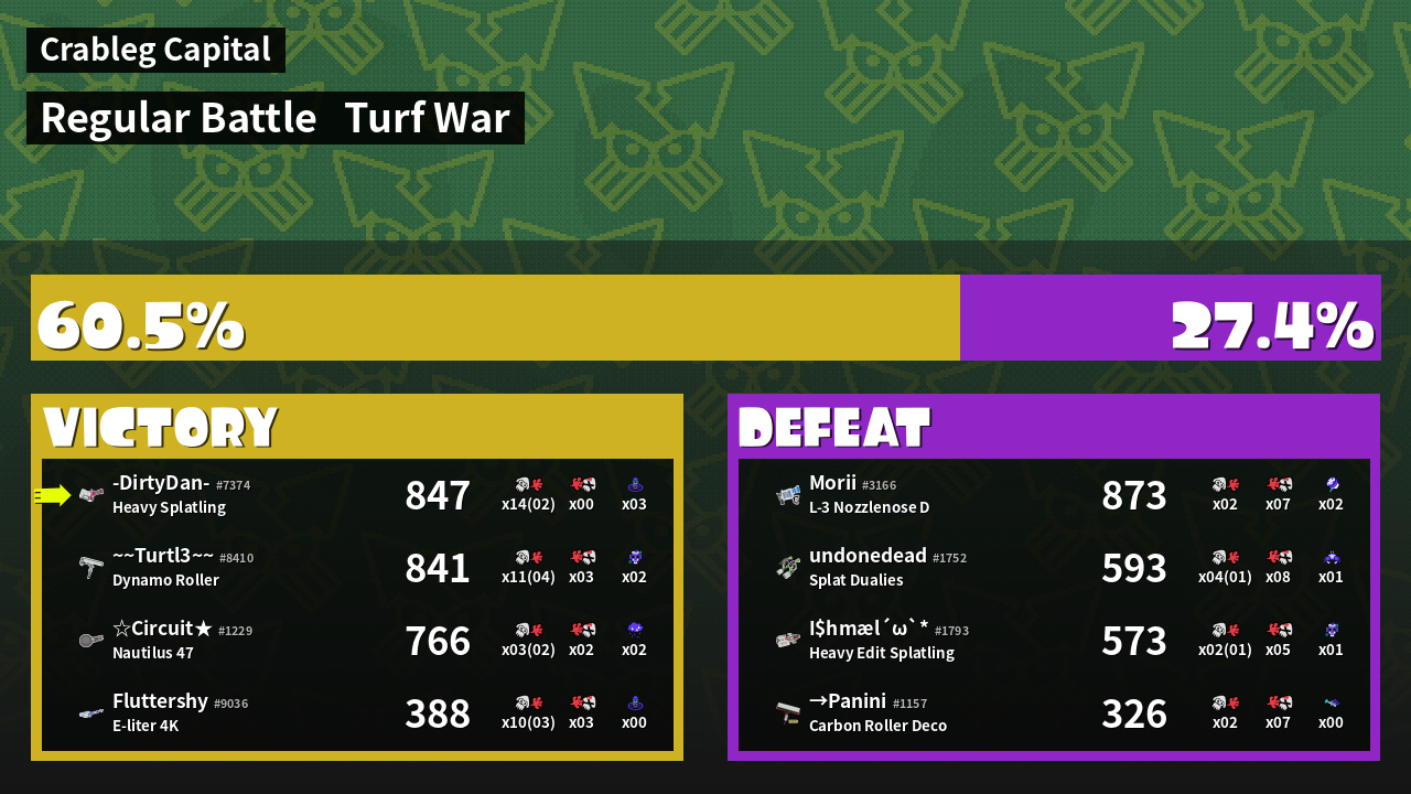 | Mode | Turf War - Regular Battle | ||